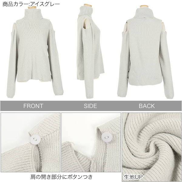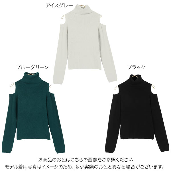 ボリュームのあるニットとショルダーカットがバランスよくメリハリのあるデザインです。
