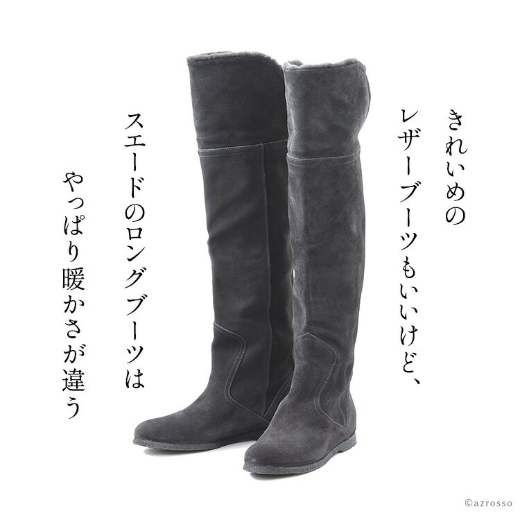 選択肢1:ブラック ネイビー ヘーゼルナッツ グレー ダークブラウン選択肢2:35(22cm) 36(23cm) 37(24cm) 38(24.5cm) 39(25cm) 40(25.5cm) ひざが暖かい、防寒仕様のおしゃれなスエード レザーを使用したニーハイブーツ。