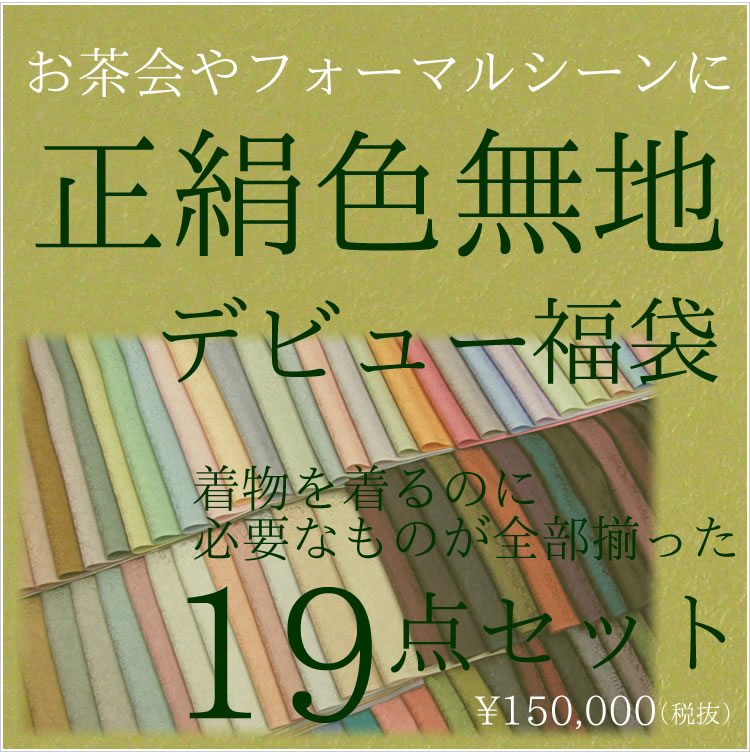 【正絹色無地デビュー福袋】正絹色無地 正絹長襦袢 袋帯or名古屋帯 正絹帯揚げ帯締め 草履 バッグ【2015福袋】 セール対象外