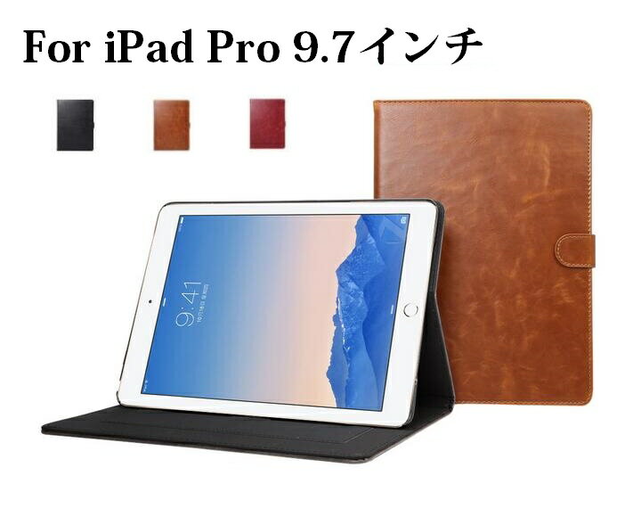 訳あり iPad Air2/Pro 9.7インチ(2016年モデル)選択 牛革風 PUレザー ケース カバー スタンド オートスリープ機能 カードポケット付き(ブラック、ブラウン、レッド、カーキ)4カラー選択