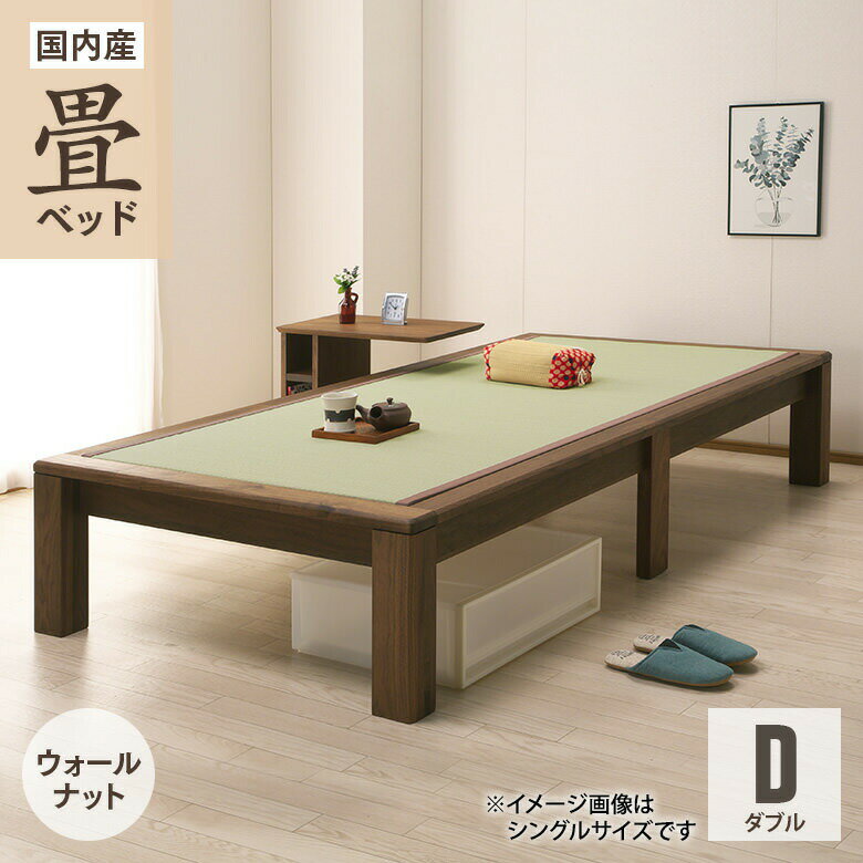 ヘッドレスベッド ウォールナット無垢材 ダブルベッド 畳ベッド 大川家具 大川産 国産い草畳