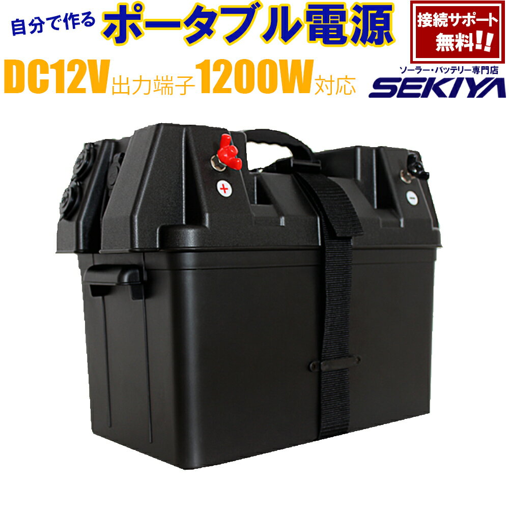 家庭用 ポータブル電源 バッテリーを入れると ポータブル電源に SEKIYA バッテリー NIN BOX 簡単接続で 誰でもオフグリッドシステムが作れる DC12V外端子 USB出力 バッテリー容量表示付 12Vソケット USB出力