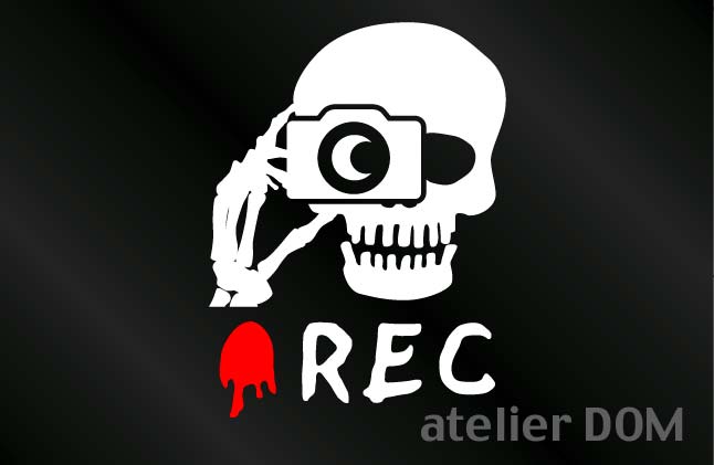 アトリエDOMオリジナルドクロのドライブレコーダーステッカードクロ スカル ガイコツ ドラレコ ステッカー●REC横9cm 縦12cm[文字色:白]